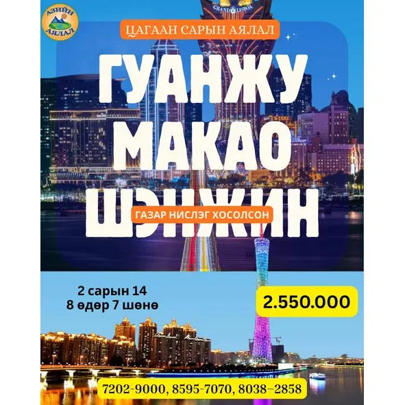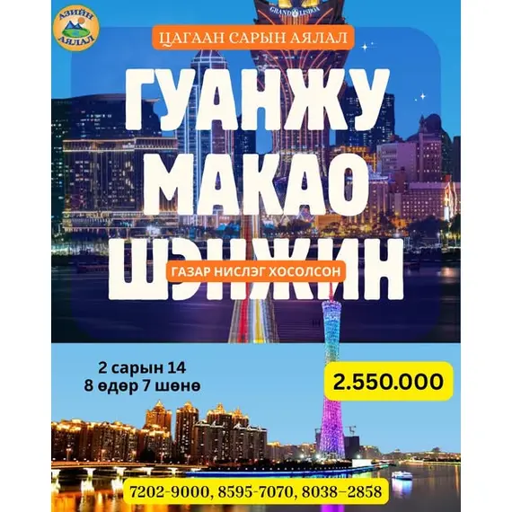 ХӨХ ХОТ – ГУАНЖОУ – МАКАО – ШЭНЖИН АЯЛАЛ