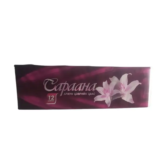 Сараана брэндийн ариун цэврийн цаас нь MNS 4273:1995 стандартын шаардлага хангасан, Ариун цэврийн шаардлага хангасан үйлдвэрт үйлдвэрлэсэн бөгөөд Модноос гаргаж авсан 100% цэвэр цаас юм.Голгүй бөгөөд 12ш-ээр савлагдсан буюу ашигтай савлагдсан эдийн засагт хэмнэлттэй бүтээгдэхүүн юм.