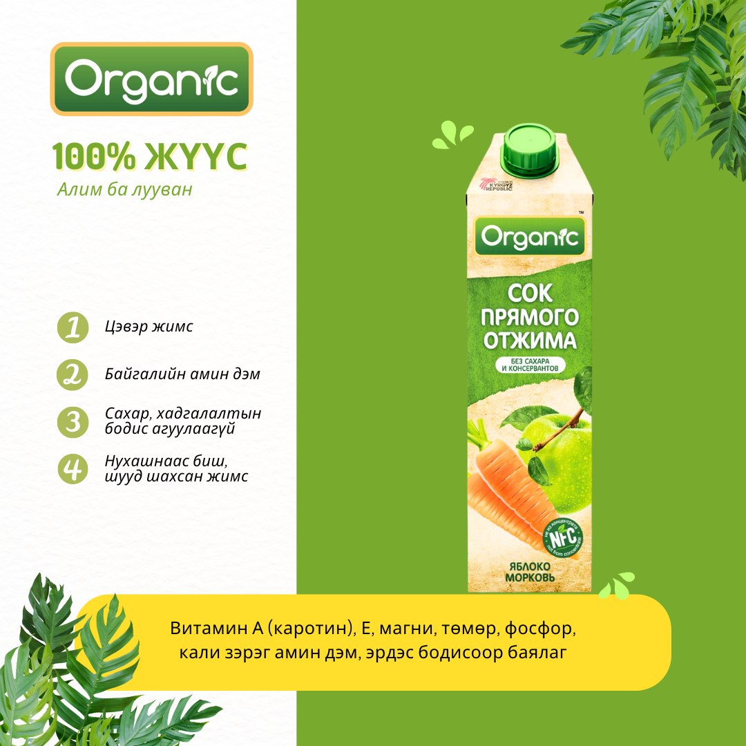 ORGANIC – 100% Шуурай жүүс Эрүүл мэндэд анхаарсан, байгалийн амин дэмээр баялаг жүүсийг танд хүргэж байна!