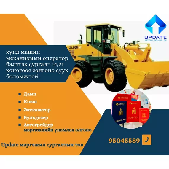 Хүнд_машин_механизмын_оператор бэлтгэх сургалтандаа урьж байна.