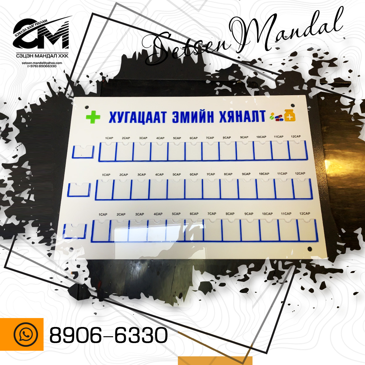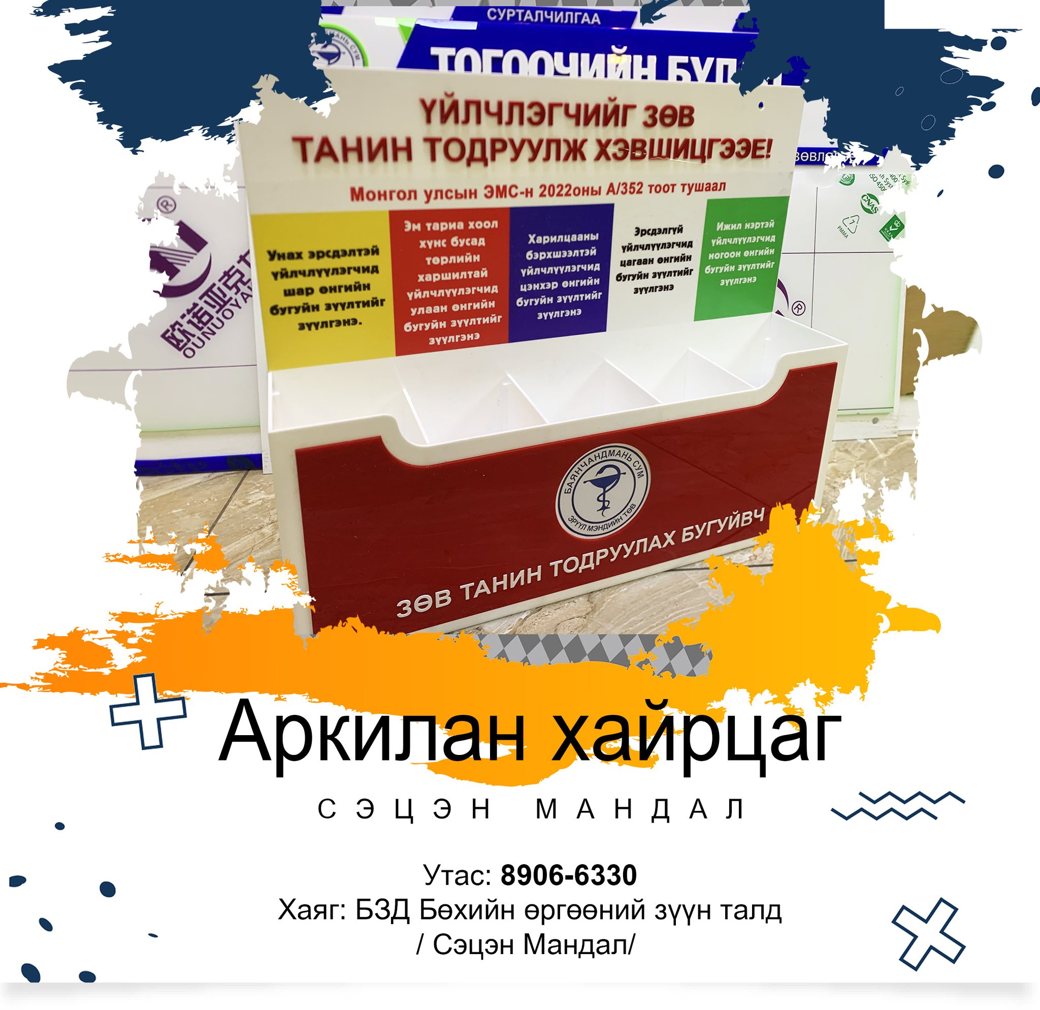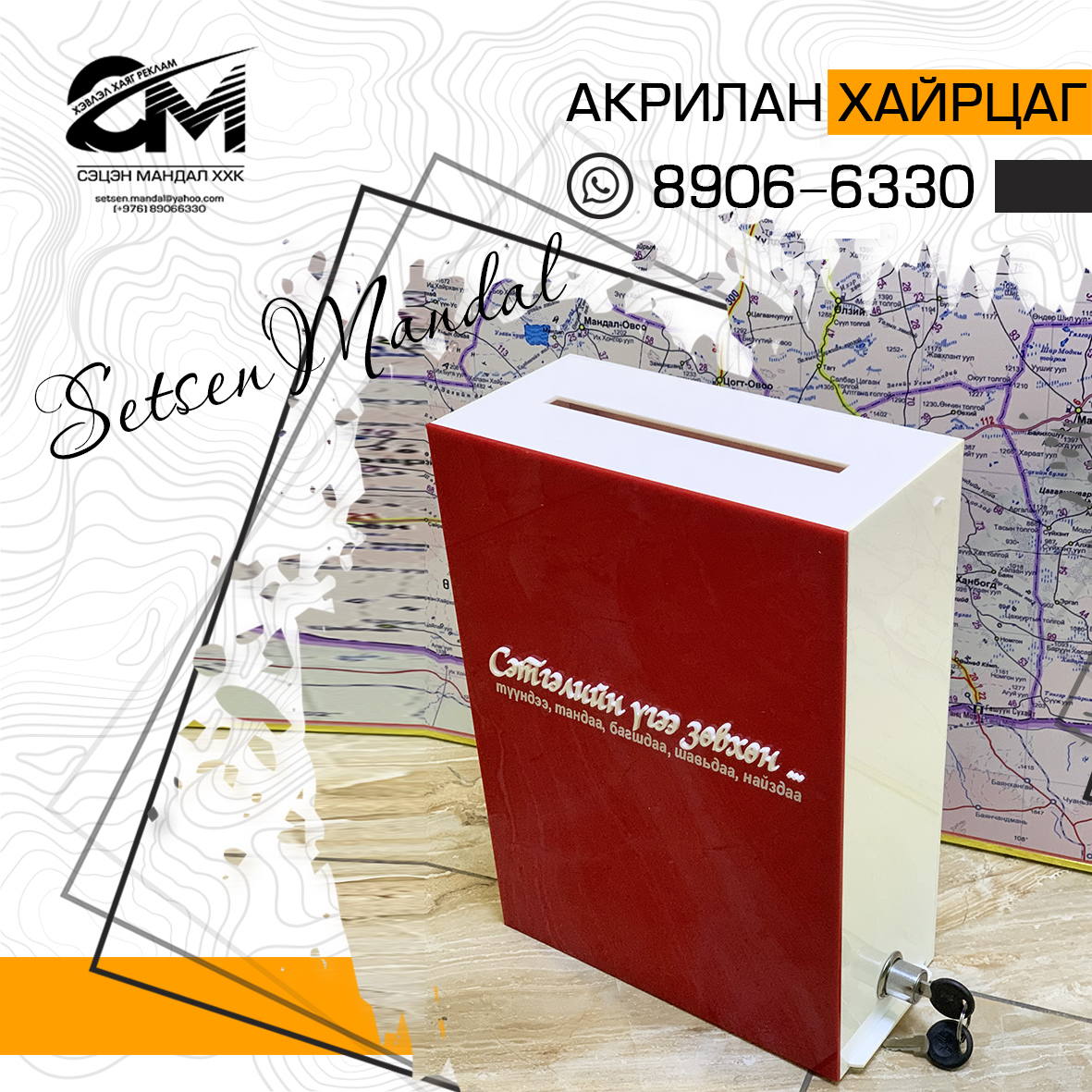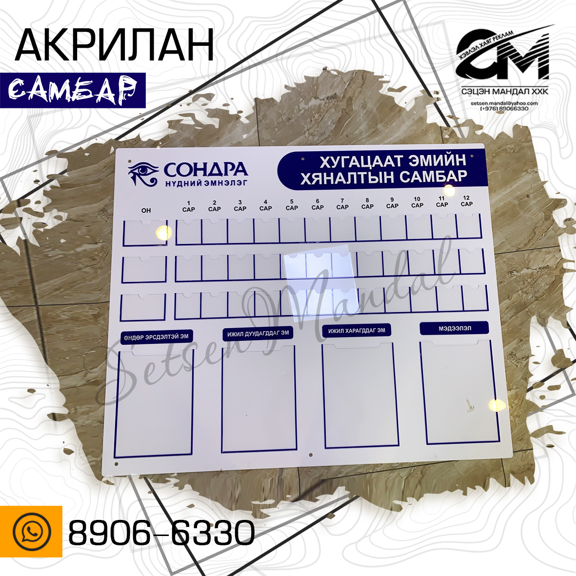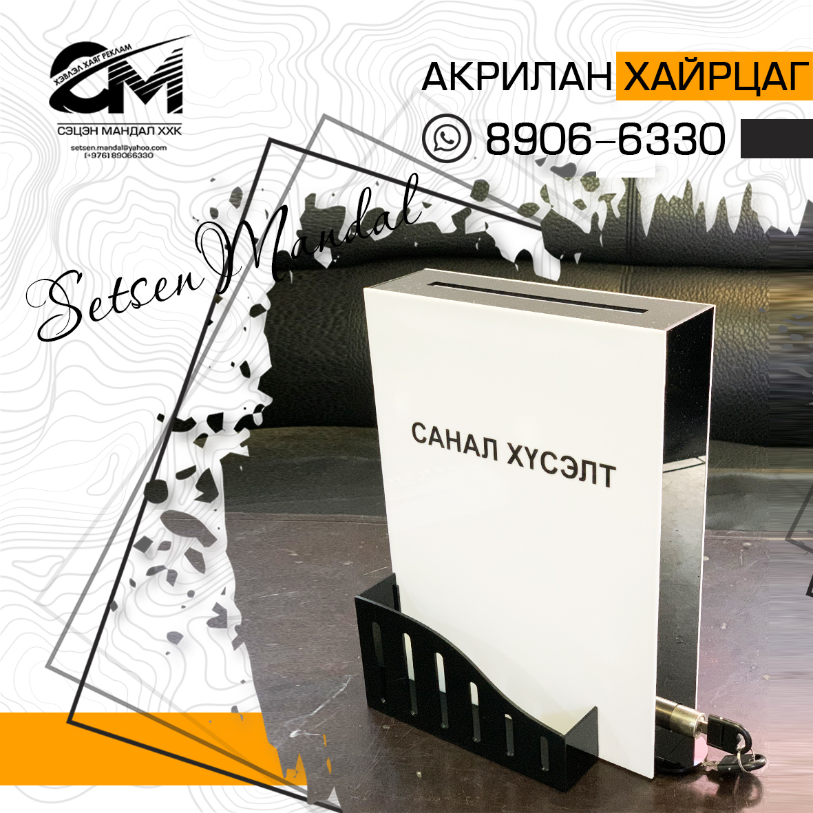 Акрил болон хөөсөн самбар бүхий рекламын бүтээгдэхүүн.