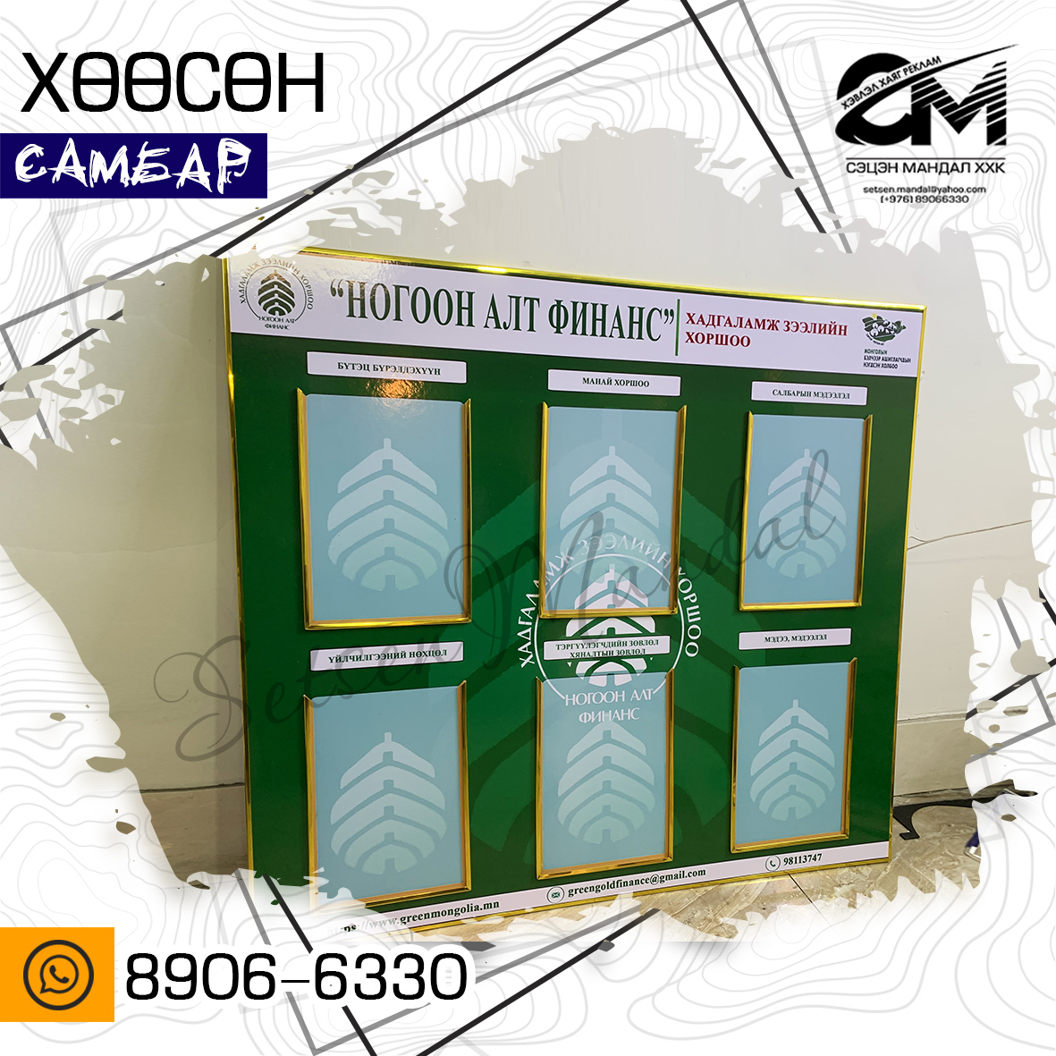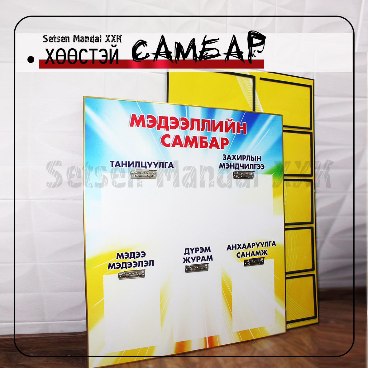Сэцэн Мандал ХХК нь бүх төрлийн хэвлэл реклам, сурталчилгааны бүтээгдэхүүн үйлдвэрлэлээр үйл ажиллагаа явуулдаг байгууллага юм. Бид байгууллага, аж ахуйн нэгж болон хувь хүний захиалгат бүтээгдэхүүнийг орчин үеийн тоног төхөөрөмж, чанартай материал ашиглан мэргэжлийн түвшинд, богино хугацаанд хийж гүйцэтгэдэг.
