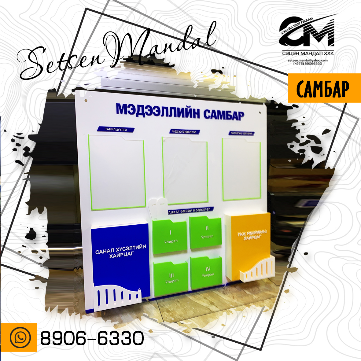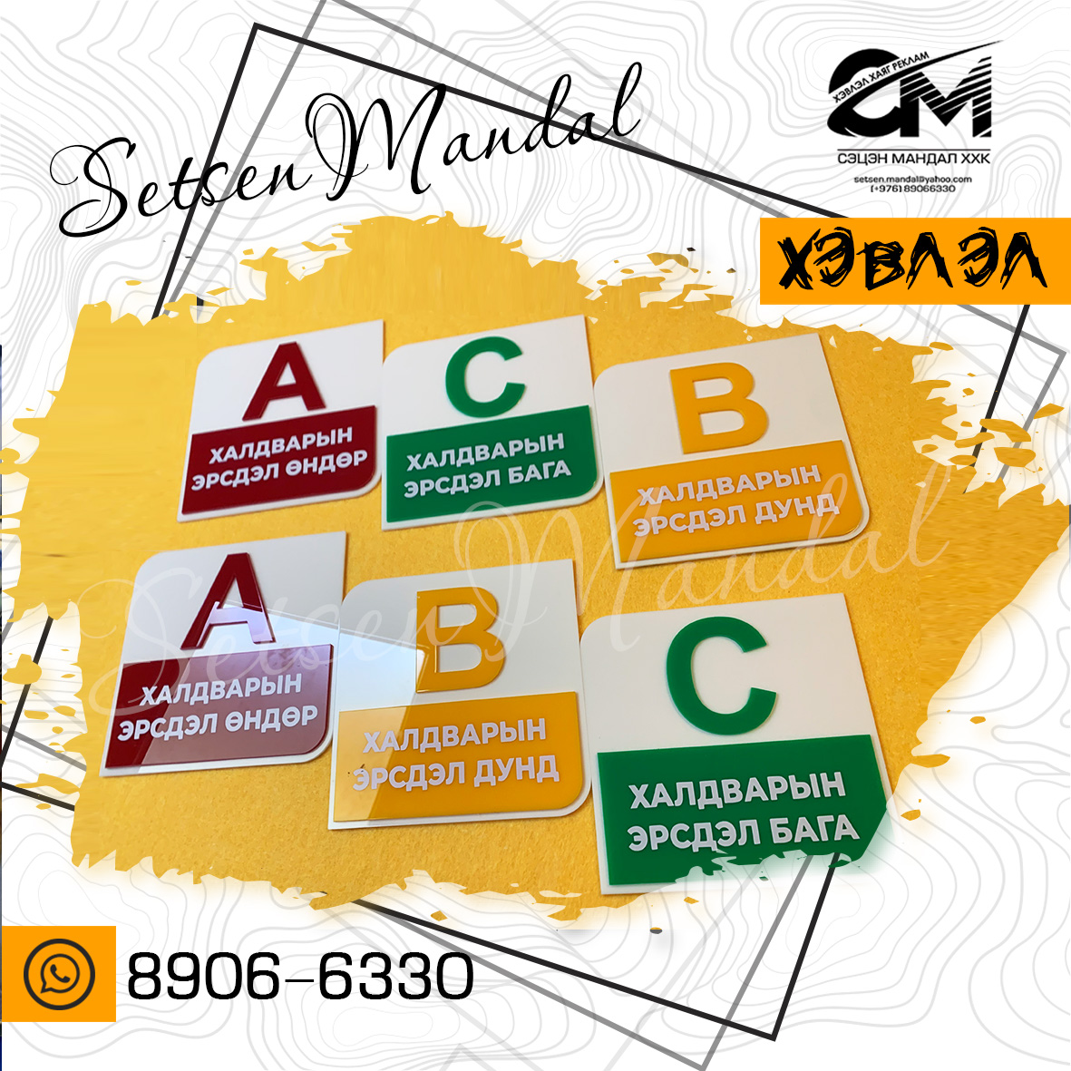 Гадна болон дотор хаяг, рекламын самбар үйлдвэрлэнэ.