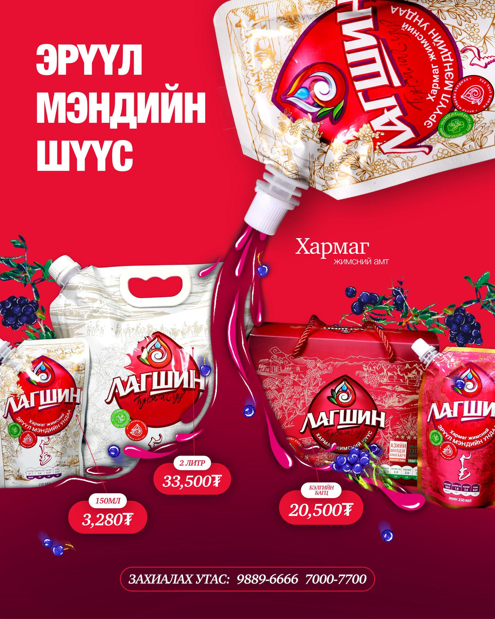 Лагшин Тунгалаг шүүс нь ямар нэгэн хиймэл амт оруулагч, өнгө будаг, химийн нэмэлтгүй бөгөөд жимсний жинхэнэ амт, шим тэжээлийг бүрэн хадгалсан байгалийн цэвэр бүтээгдэхүүн юм.