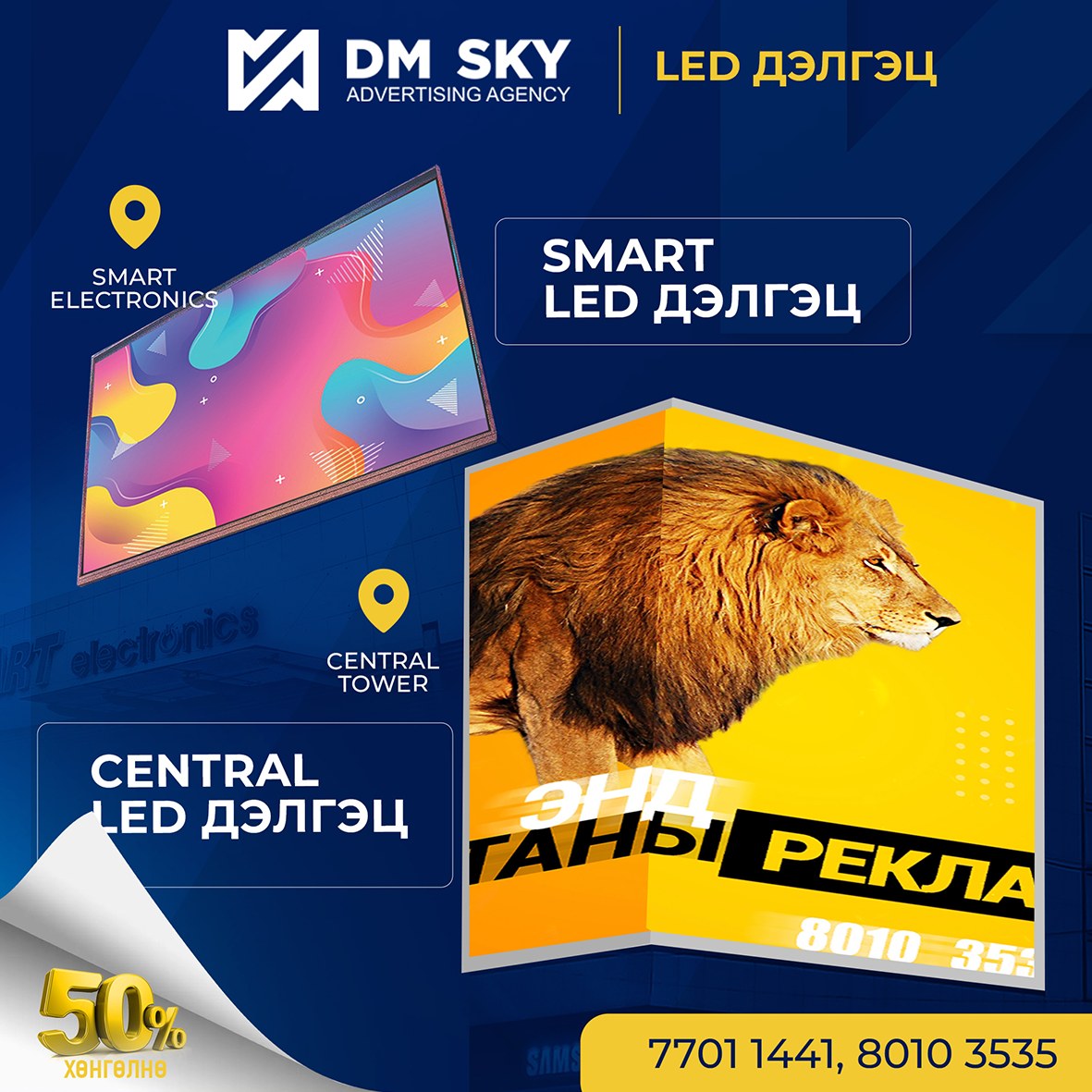 DM SKY LLC нь төслийн судалгаа, төлөвлөлт, дизайн, үйлдвэрлэл, суурилуулалт, сурталчилгааны байршуулалт, хяналт-үнэлгээ хүртэлх нэг цэгийн цогц үйлчилгээ үзүүлдгээрээ давуу талтай.