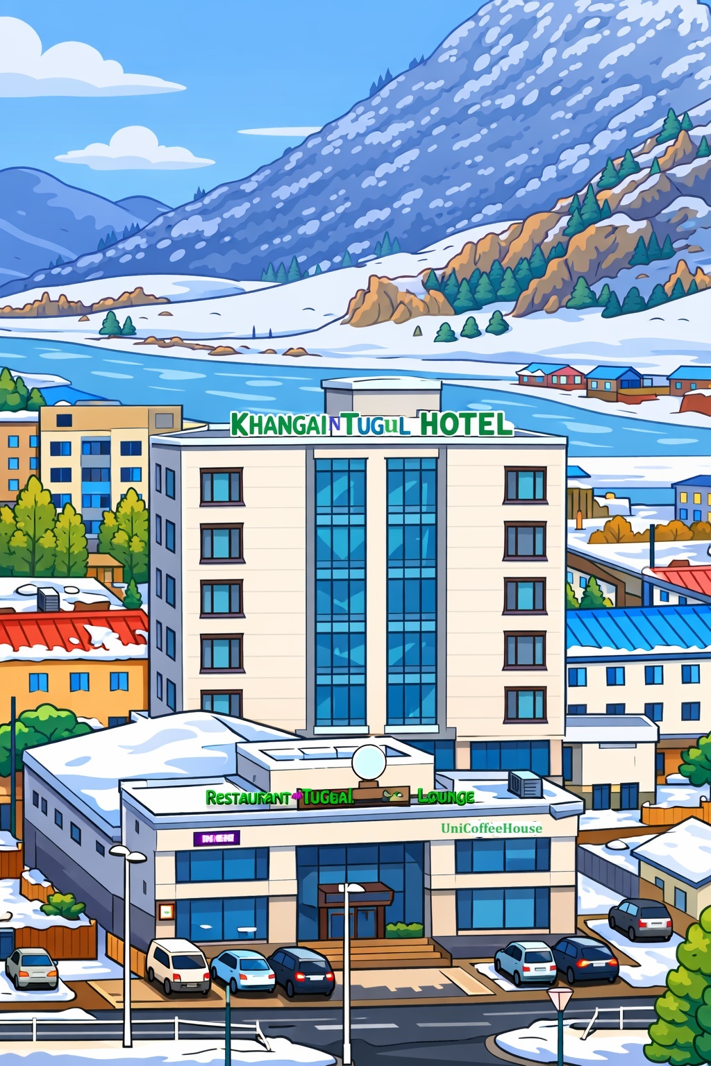 Khangain Tugul Hotel & Event Hall нь Архангай аймгийн төвд байрлах орчин үеийн зочид буудал бөгөөд танд тав тухтай байр, гэрэлтүүлэгтэй өрөөнүүд, амралт, бизнес уулзалт, арга хэмжээ зохион байгуулах боломжийг санал болгодог.