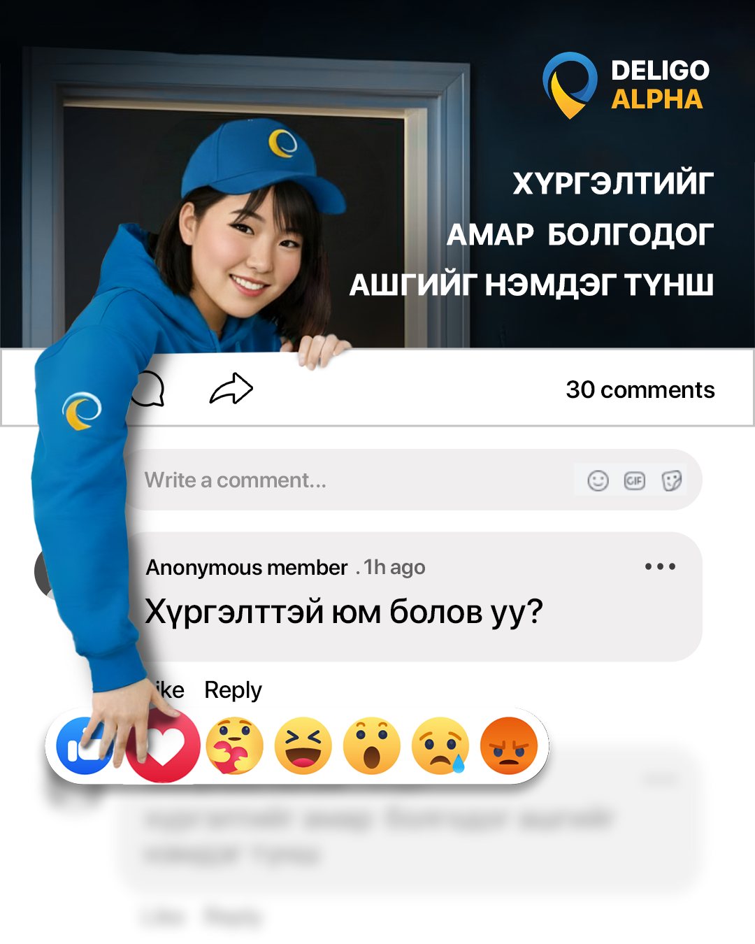 DeliGo Alpa /Delivery Systems/ нь карго, ачаа тээвэр болон хүнс хүргэлтийн чиглэлээр мэргэшсэн цогц хүргэлтийн үйлчилгээний компани юм. Бид бизнес эрхлэгчдэд хүргэлтийн бүх шат дамжлагыг нэг дороос шийдэх боломжийг олгодог.
