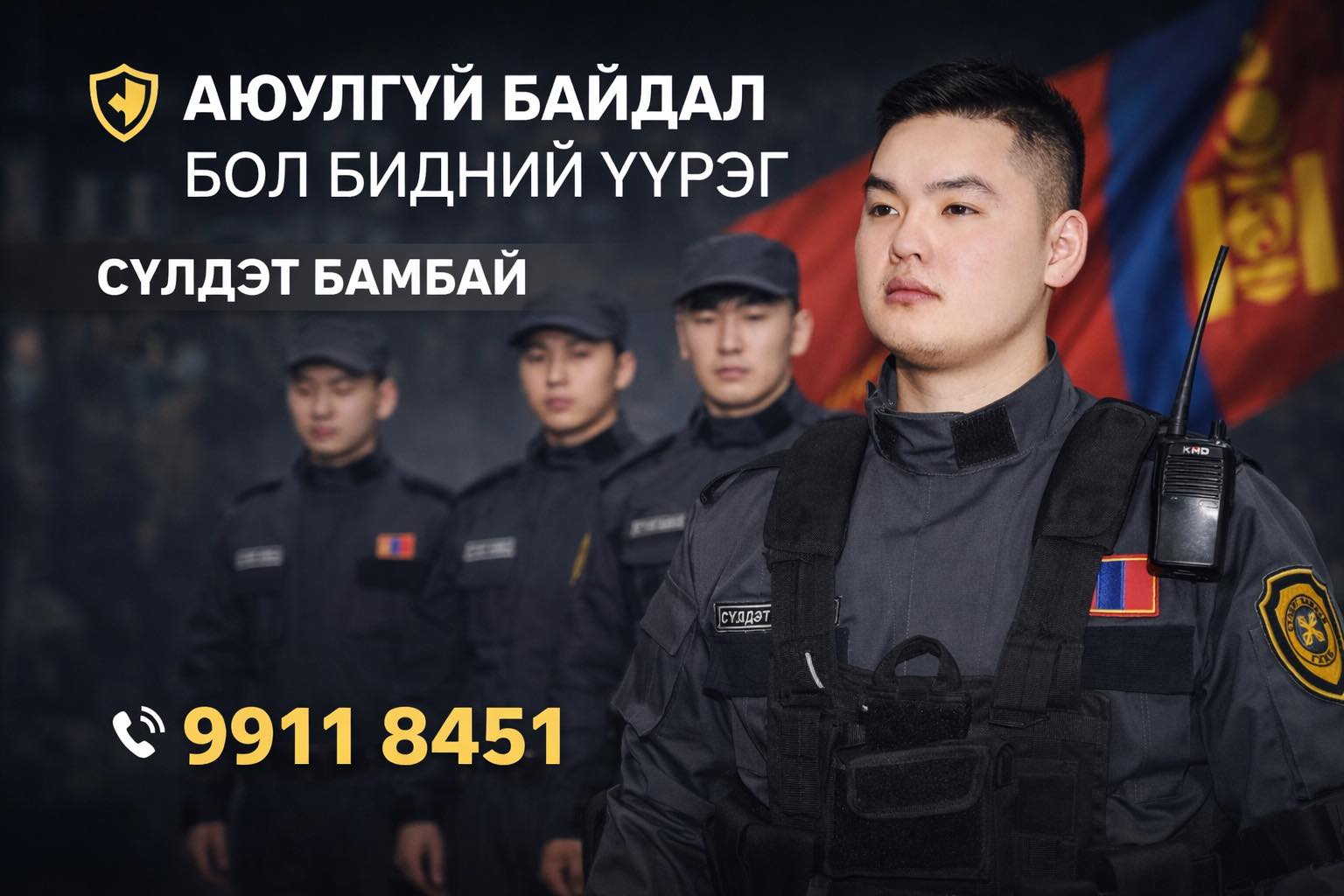 Сүлдэт Бамбай Харуул Хамгаалалт нь байгууллага, аж ахуйн нэгж, орон сууцны хотхон болон бизнесийн байгууллагуудад мэргэжлийн харуул хамгаалалтын үйлчилгээ үзүүлдэг найдвартай хамт олон юм.