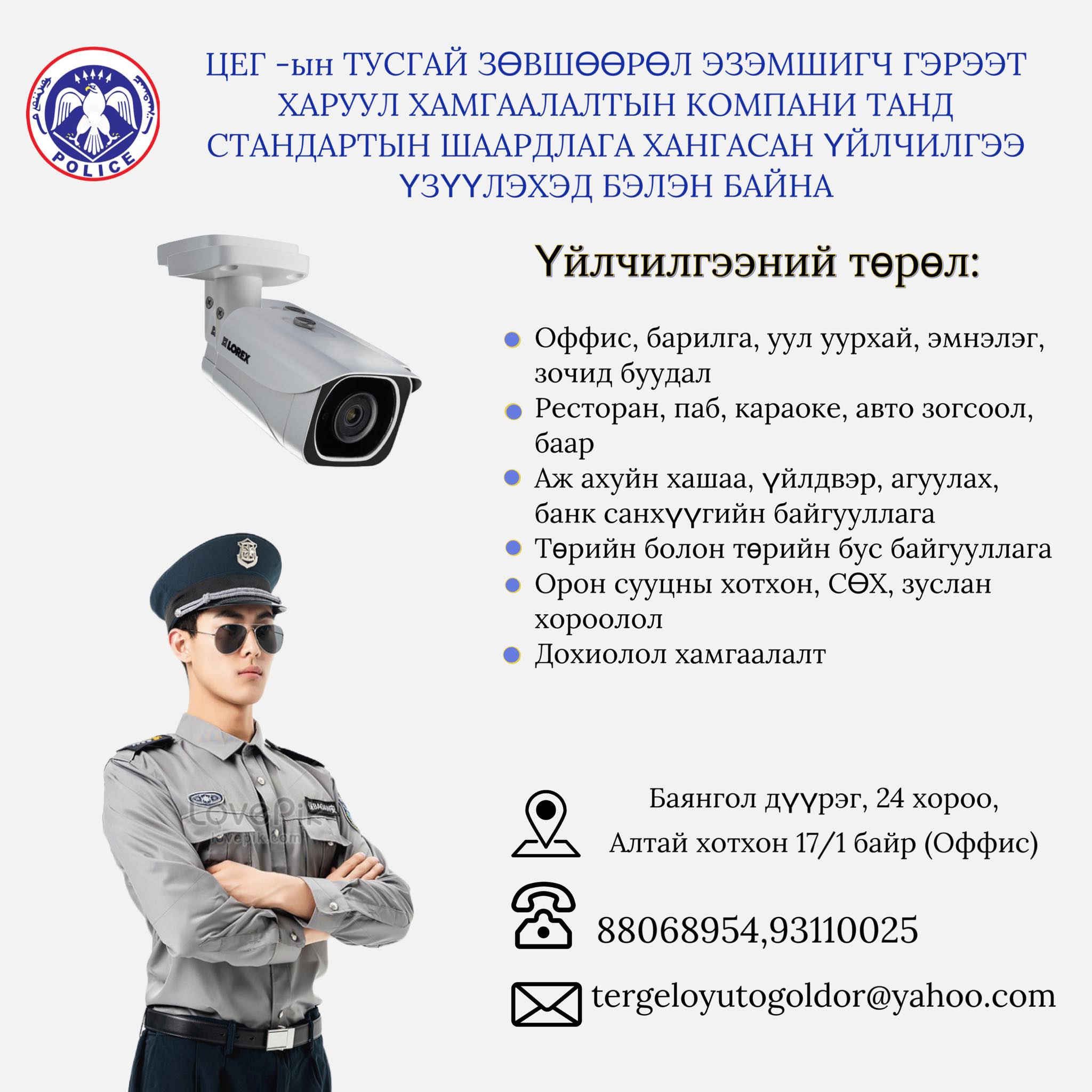 Манай хамт олон 24/7 байнгын хяналт, шуурхай ажиллагаа, ёс зүйтэй үйлчилгээний зарчмыг баримтлан байгууллага, аж ахуйн нэгж, орон сууц болон үйлдвэрлэлийн объектуудад хамгаалалтын цогц шийдэл үзүүлж байна.