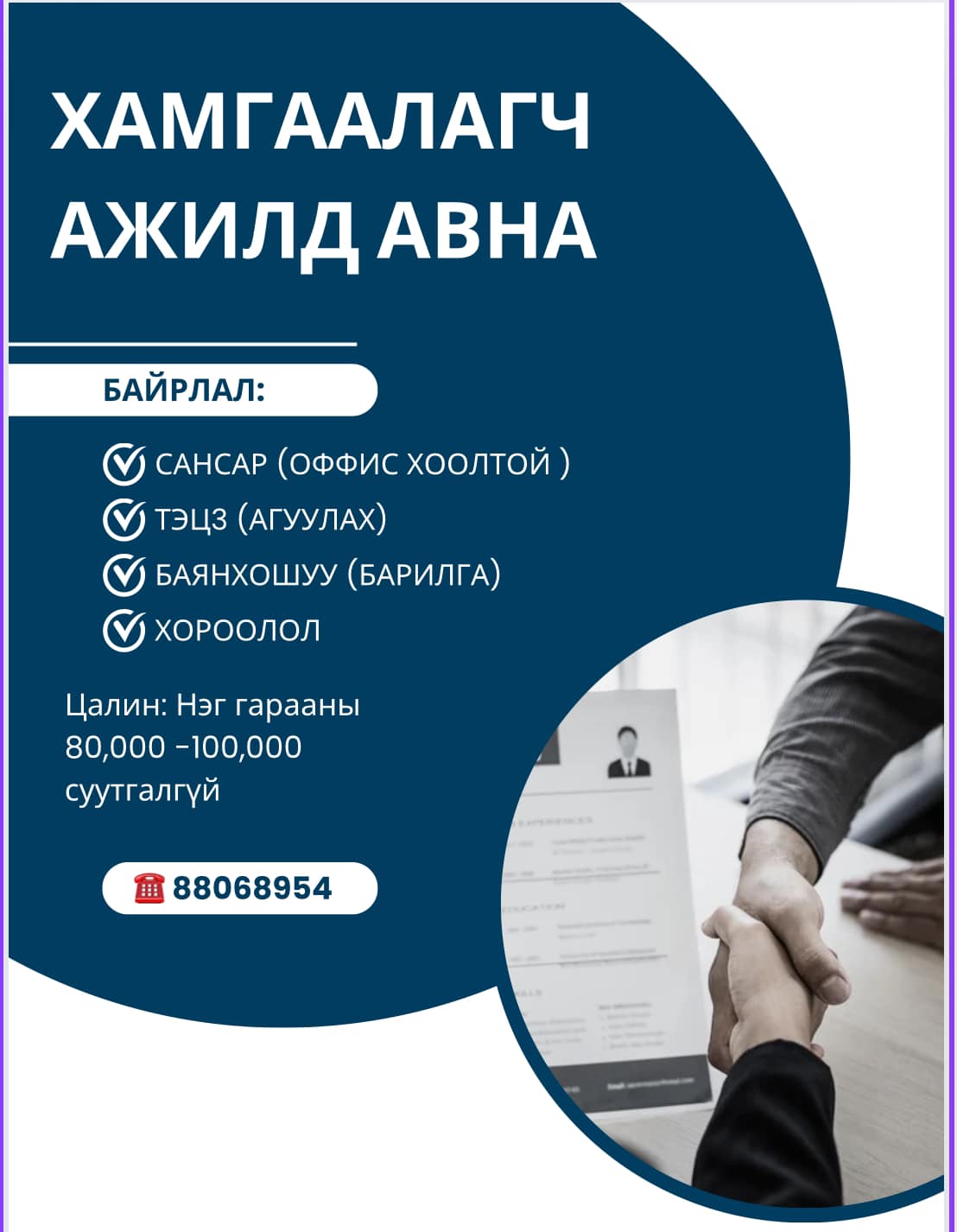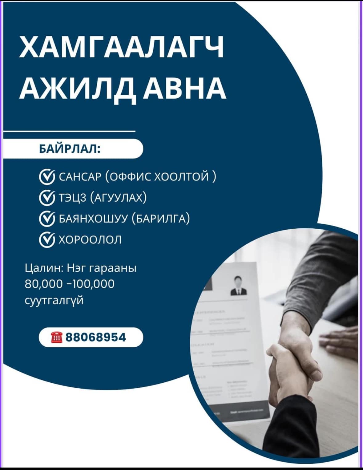 99101880 Даваа-Баасан гараг 9:00-18:00.