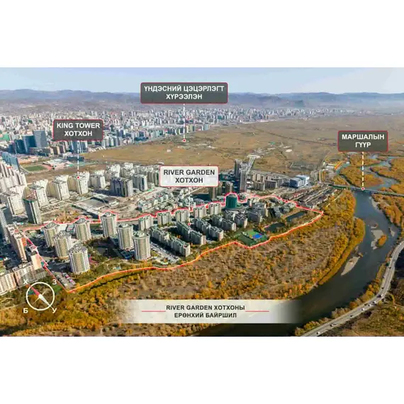 ХУД, River garden 1 хотхонд 241мкв 5 өрөө байр худалдана.